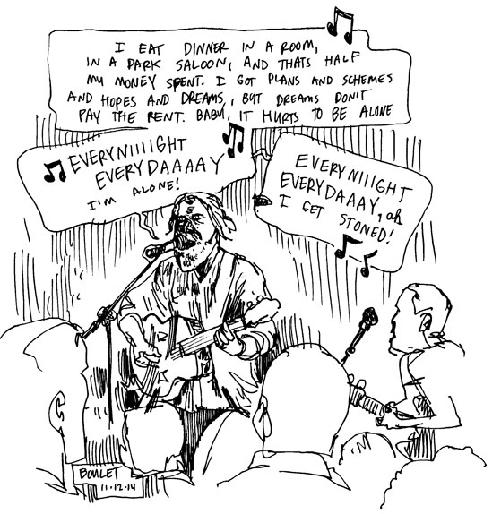 The above is my favorite song of "THE WHITE BUFFALO", and he was playing it as I was drawing this. Song title "Every Night and Every Day"